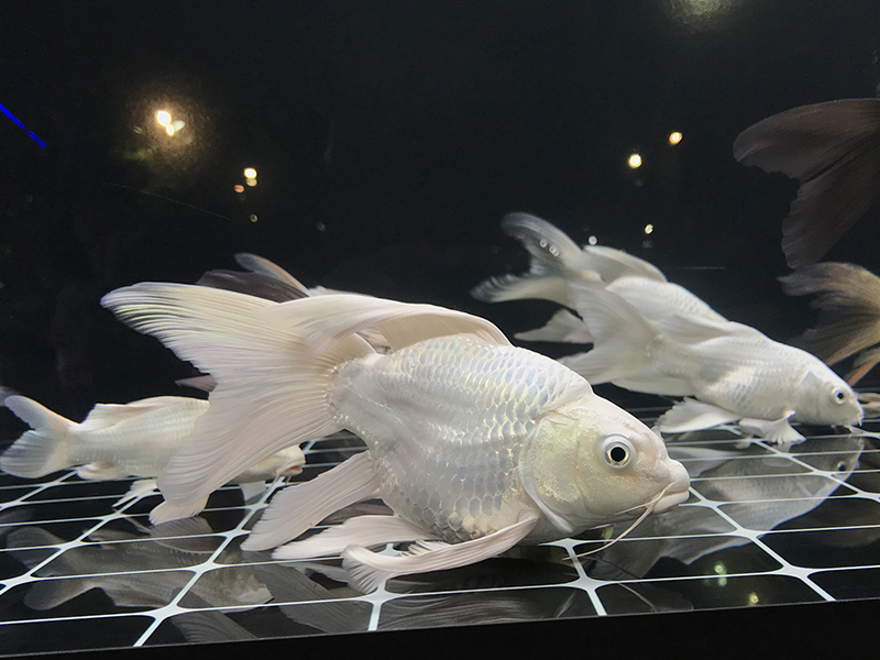 Màu trắng thuần khiết khiến cá trông nổi bật hơn trong bể kính, đặc biệt khi kết hợp với nền tối hoặc ánh sáng dịu.